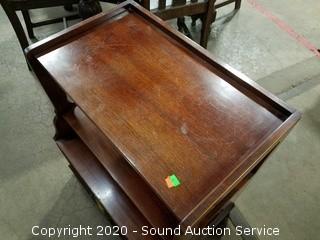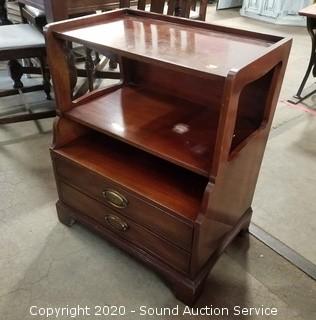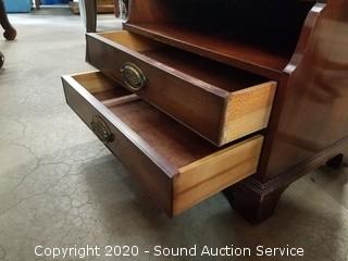 Lot Details: Various wear to the finish. 2 shelves and 2 drawers. 28" x 23" x 16".