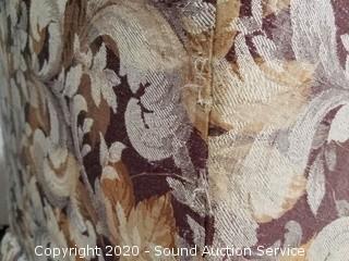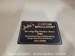 Lot Details: Some loose threads and cat scratches on the sides of the back rest, overall good condition. Upholstered by Julie's Custom Upholstery in Gig Harbor, WA. 35" H x 26.5" W, 19" to seat.
