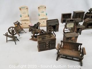 Sterling Silverware, Silverplate Flatware, Thomas Kinkade Canvas Artwork Litho's, Refrigerator, Antique Possum Belly Bakers Hutch, Vtg. Dining Set, Hutch, Living Room Tables, Antique Victorian Serpentine Cameo Back Sofa & Cameo Back Chairs, Vtg. & Antique Collectible Dolls, Many Occupied Japan Figurines, Old Working Phonograph & Records, Vtg. Makeup Vanity w/Spindle Back Chair, Nesting Tables, Vintage Utensils & Kitchen Gadgets, Stunning Howard Miller Grandfather Clock, Vtg. Mantle Clocks, 65pc Franciscan Desert Rose Dish Set, Pillows, Bedding, Glassware, Towels & SOOO much more!!!