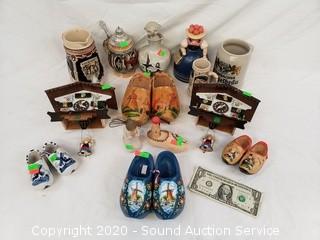 Lot Details: Includes steins, hand crafted Holland clogs, quartz clocks and more.