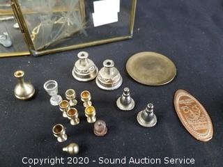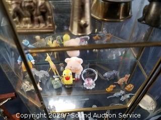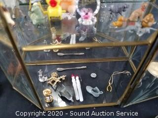 Lot #0033: Vtg. Etched Glass Display w/ Miniature Trinkets