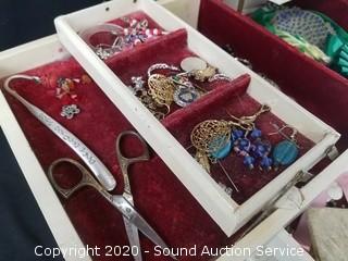 Sterling Silverware, Silverplate Flatware, Thomas Kinkade Canvas Artwork Litho's, Refrigerator, Antique Possum Belly Bakers Hutch, Vtg. Dining Set, Hutch, Living Room Tables, Antique Victorian Serpentine Cameo Back Sofa & Cameo Back Chairs, Vtg. & Antique Collectible Dolls, Many Occupied Japan Figurines, Old Working Phonograph & Records, Vtg. Makeup Vanity w/Spindle Back Chair, Nesting Tables, Vintage Utensils & Kitchen Gadgets, Stunning Howard Miller Grandfather Clock, Vtg. Mantle Clocks, 65pc Franciscan Desert Rose Dish Set, Pillows, Bedding, Glassware, Towels & SOOO much more!!!