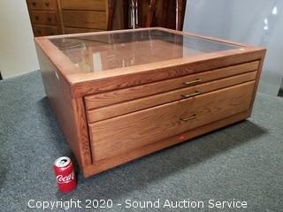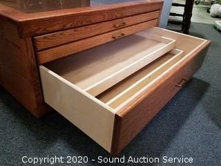 Lot #0015: 3 Drawer Glass Top Oak Flat File Table