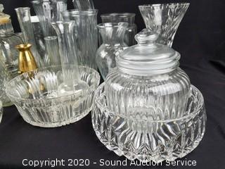 Lot Details: Includes vases, canisters, some crystal and more.