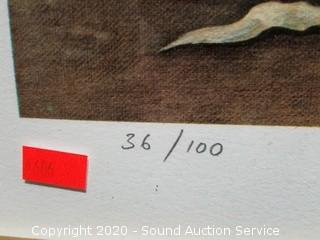 Lot Details: Cannot make out signature, refer to photos. #36/100 dated 1980. 29" x 41". Framed, with glass.