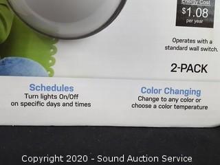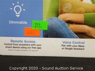 Lot Details: 9W, works with Alexa and Google Assistant, remote access, voice control, dimmable, multi-color. 800L, 2700K-6500K color. Factory sealed.