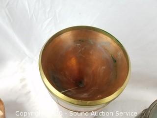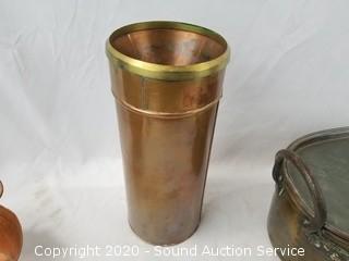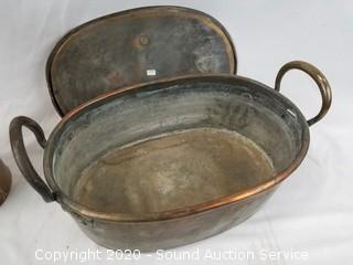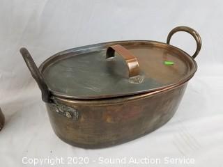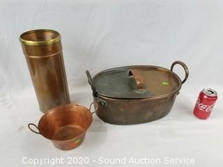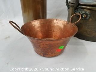 Lot #0079: Vtg. Copper Roaster, Bowl & Funnel Container