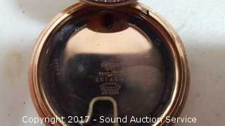 Lot #0053: 1907 Hamilton 21 Jewel Warranted 14k GF Pocket Watch