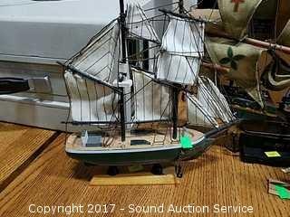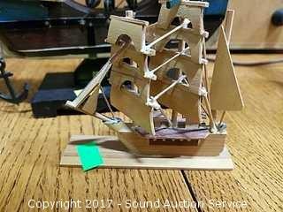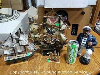 Lot #0020: 3 Wooden Ships & Captain Figurine