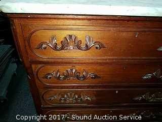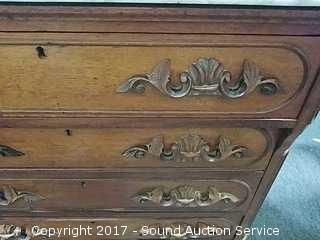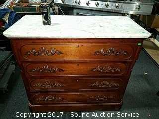 Lot #0218: Antique Marble Top 5 Drawer Dresser