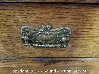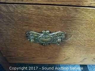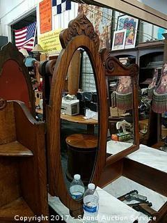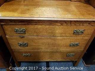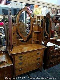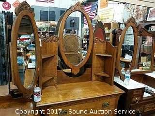 Lot #0137: Antique Oak Tri-Mirror 3 Drawer Dresser
