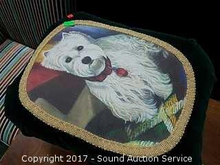 Lot #0015: Cast Iron Base Ottoman w/Custom Terrier Upholstery