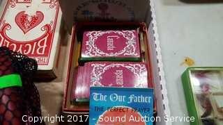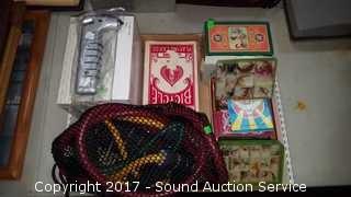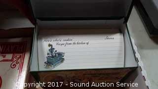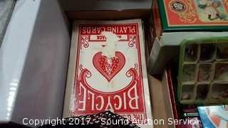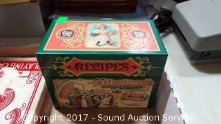 Also comes with jumbo playing cards, vintage index card tin recipe box, and Canasta cards. Comes with 4 escape hammers, three still wrapped.