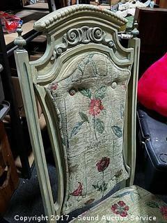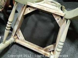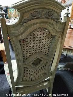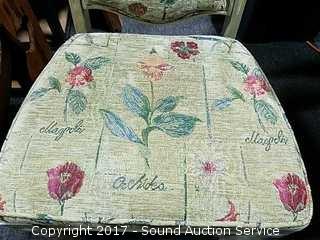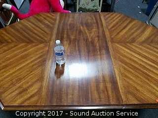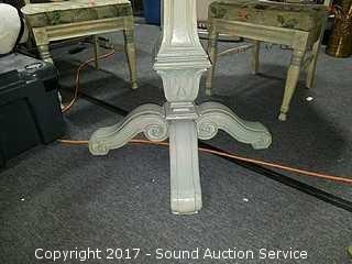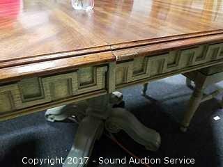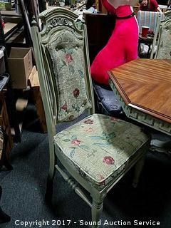 Comes with 4 ornate padded chairs. Table is 31" tall, 61" x 44" (includes the 18" leaf).