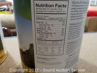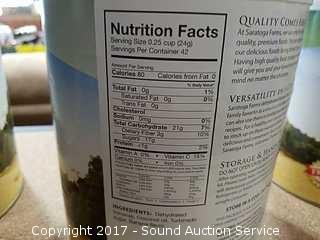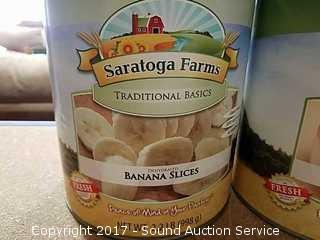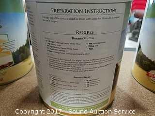 One 10 oz freeze dried marion blackberries, one 2.2lb can of dehydrated banana slices. Both packaged in 2015.