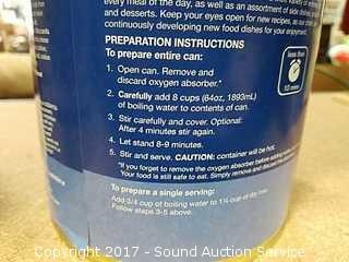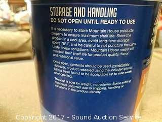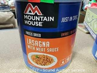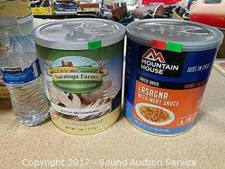 One 4oz can of freeze dried sliced mushrooms(packaged 2015), one 19.19oz can of freeze dried lasagna with meat sauce(use by 2040)