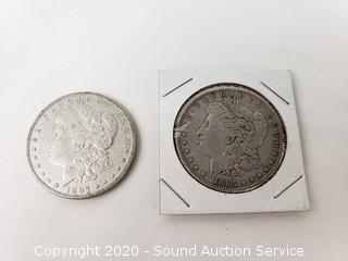 Lot #0194: 1885 & 1897 90% Silver Morgan Silver Dollars