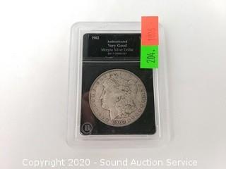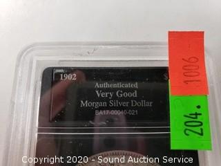 Lot #0204: 1902 Authenticated 90% Morgan Silver Dollar