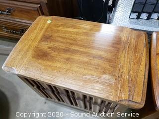 Lot Details: Matches the previous lot. Both have some wear to the finish, otherwise in good condition. Solid oak, dovetail joinery. 23" H x 27" W x 16.5" D.