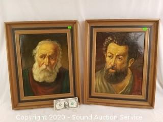 Lot #0032: 2 Original Artist Signed Oil Painting Portraits