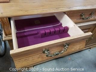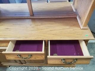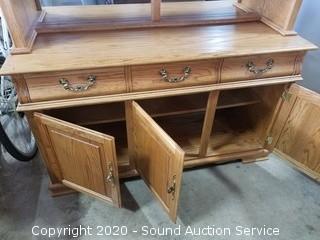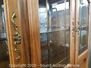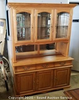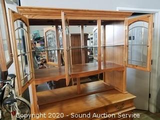 Lot #0013: Beautiful Oak Reel Furn. Lighted, Mirrored Hutch