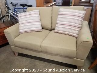 Lot #0006: Nice Green Beige Fabric Loveseat