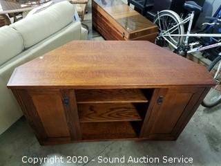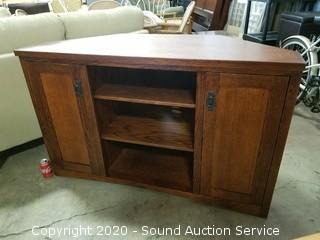 Lot #0010: Nice Oak Media Console Corner Cabinet