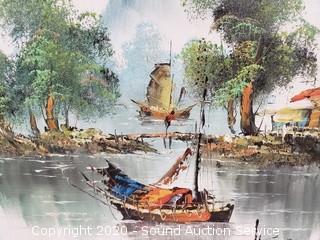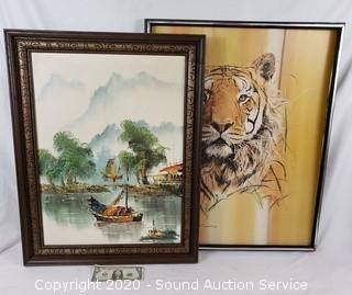 Lot #0339: Original A/S Oriental Harbor Painting &Tiger Litho