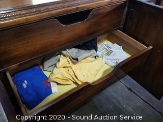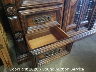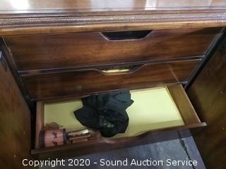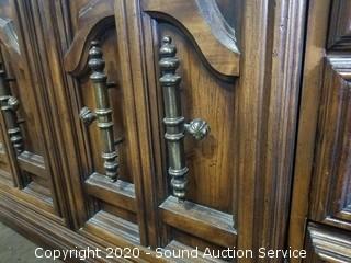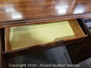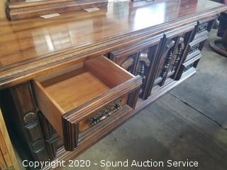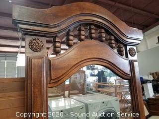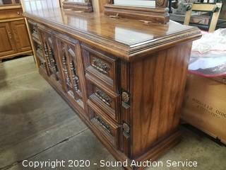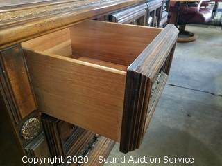Lot Details: Top left drawer has some damage. Some wear to the finish. 32" H x 75" W x 19" D with 2) 51" H x 26" W mirrors.