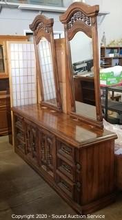 Lot #0015: Vtg. Dual Mirror 9 Drawer Dresser