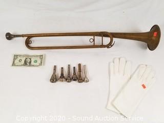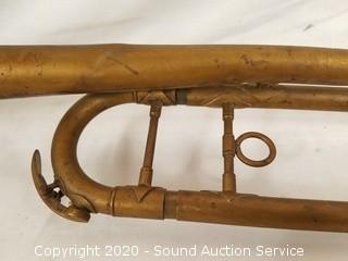 Lot #0075b: Vtg. Trombone w/Mouthpieces & Gloves