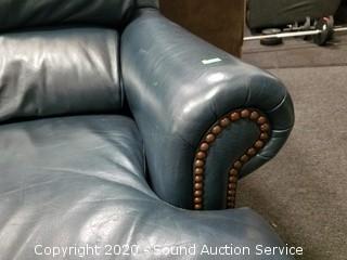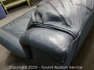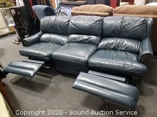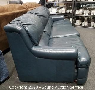 Lot #0019: Bradington Young Steel Blue Leather Reclining Sofa