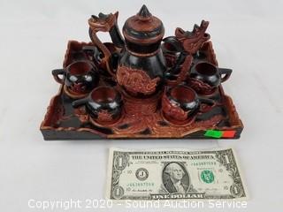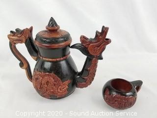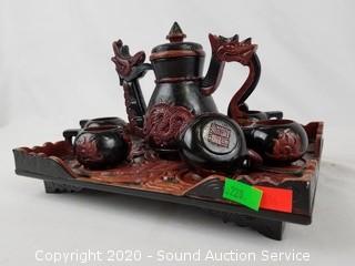Lot #0220: Carved Stone Dragonware Oriental Tea Set
