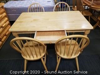 Lot Details: Table has a single drawer, Winsor chairs. Some minor wear to the top. Overall great condition. 29" H x 36" x 60".