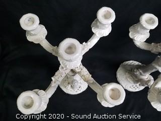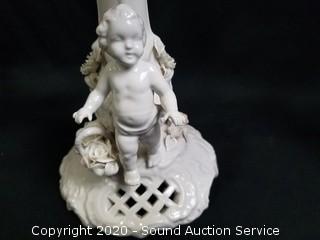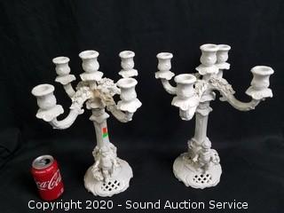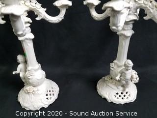 Lot #0034: Pair of German Porcelain Cherub Candelabras