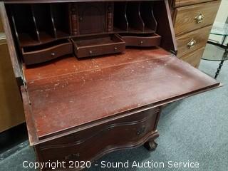 Lot #0022: Serpentine Claw Foot Mahogany Secretary Hutch