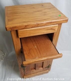 Lot #0044: Vtg. Oak Single Drawer Telephone Cabinet