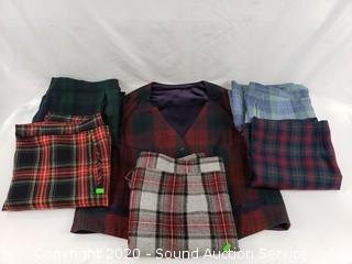 Lot Details: Includes 4 skirts (Pendleton wool, size 10 and Sergio Sari Angelo), shorts and vest. Approx. size large.