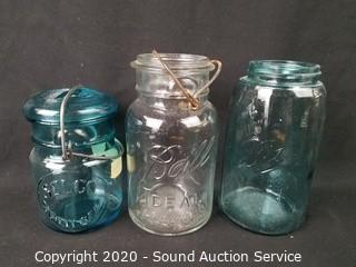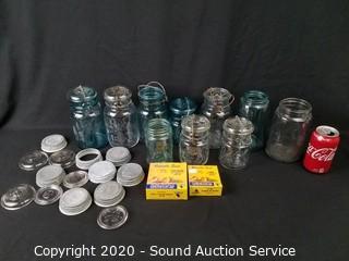 Lot #0106: 10 Vtg. Canning Jars w/Glass Lids