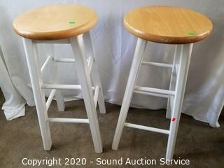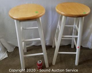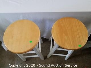 Lot #0038: 2 White Painted & Natural Wood Finish Stools