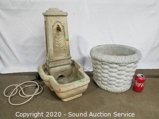 Lot #0061: 2pc Concrete Spigot Fountain & Planter