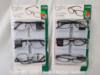 Lot #0188: 6 Design Optics +2.0 Reading Glasses