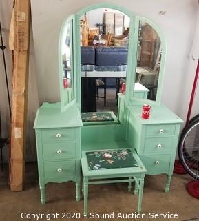Adorable Teal Painted Makeup Vanity w/Stool, Blakely K2 24 Speed Bicycles, Dunhill Furniture Gray Leather Power Sectional, Ranger 9'ft Fiberglas Sailboat, 7'ft x 4'ft Utility Trailer, Crestliner 12'ft Aluminum 3 Person Boat, Cedar Rounds & Mahogany Boards, Tenor Ukulele Guitars, Generac 5000W Portable Generator, Concrete Garden Benches, Outboard Motors, Nice Coaster Bunk Bed, H/O Trains, Griswold Cast Iron Cookware, Wedgwood, Antique Tin Type Photos Accessories, Footwear, Hardware, Jewelry, Rugs & Much More!!!