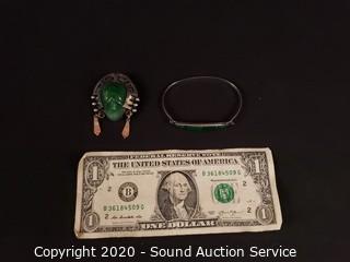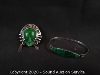 Lot #0322: Beautiful Malachite & Jade Pendant Necklace & Bracelet