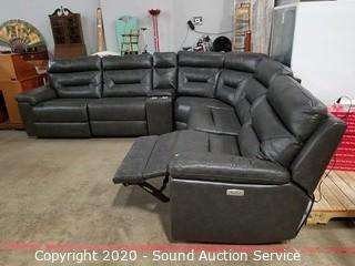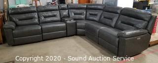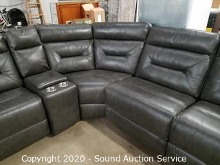 Lot #0002a: Dunhill Furniture Gray Leather Power Sectional