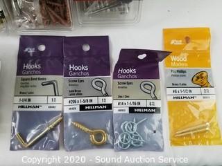 Lot Details: Includes galvanized hooks, lattice screws, wood screws, exterior screws and much more. Refer to photos for sizes.