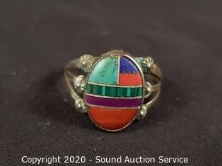 Lot Details: Ring is set with lapis, jasper and other stones. Pendant in initialed "J.C.", looks Native. TW 35g.