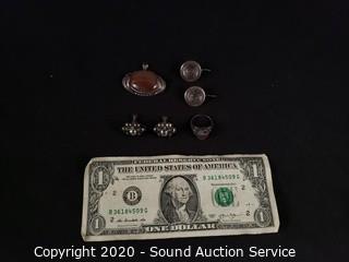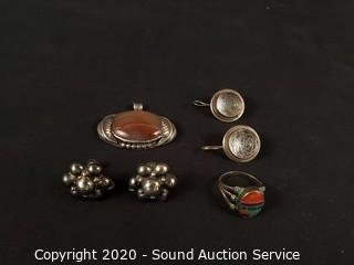 Lot #0323: Native Sterling Earrings, Ring & Pendant