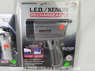 Lot Details: Includes Brinkmann LED/Xenon rechargeable flash light and Jensen self-powered AM/FM public radio and flash light. Factory sealed in original packages.