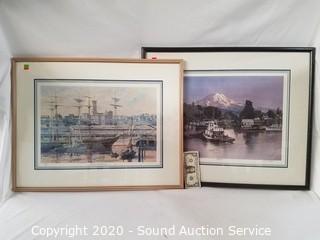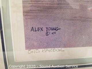 Lot Details: One is signed by "Marshall Johnson" titled 'City Waterway' #128/500, 22" x 28". Other is signed "Alex Young" titled 'Gig Harbor' #188/375, 23.5" x 28.5".